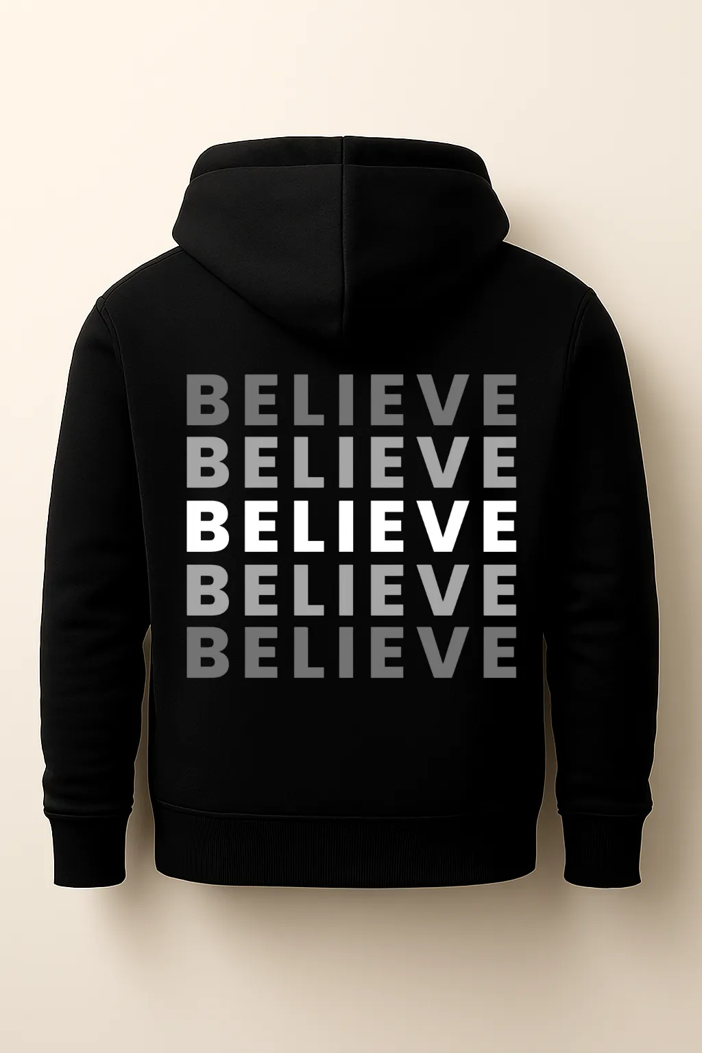 Stand tall and express your mindset with the BELIEVE Printed Hoodie.